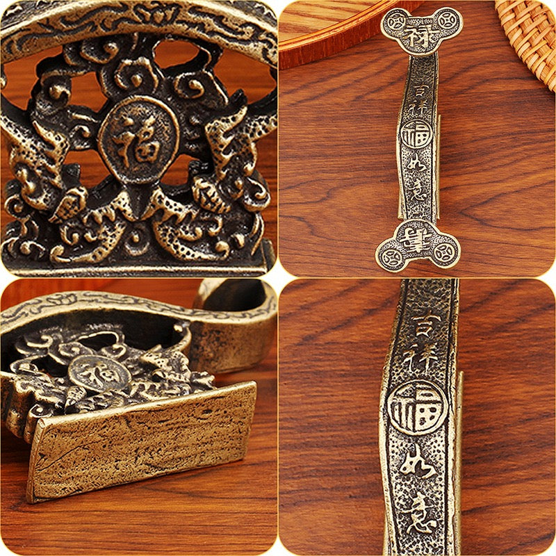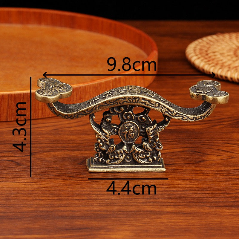 The brass Ruyi pen holder is an exquisite ornament that combines practicality and Feng Shui meaning. It is usually placed on the desk. It can be used as a pen holder and can also bring good luck and good fortune. This pen holder is handmade with high-quality brass and has a traditional "Ruyi" shape, which symbolizes good luck and success.