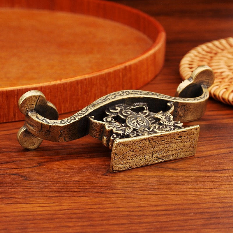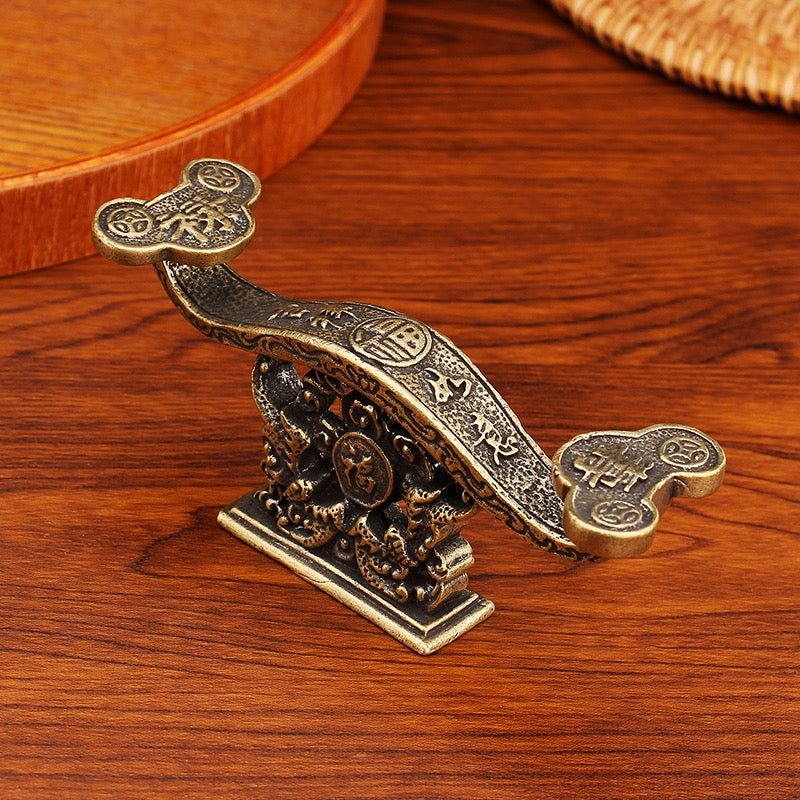 This brass Ruyi pen holder is not only an elegant office decoration, but also a Feng Shui instrument that can bring good luck and wisdom to the owner. It is suitable for improving personal concentration and creativity, helping career development and goal achievement.