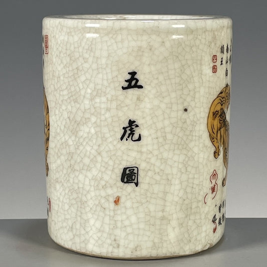 Antique porcelain pen holder; Feng Shui ornaments with five tigers to ward off evil spirits