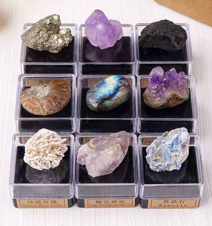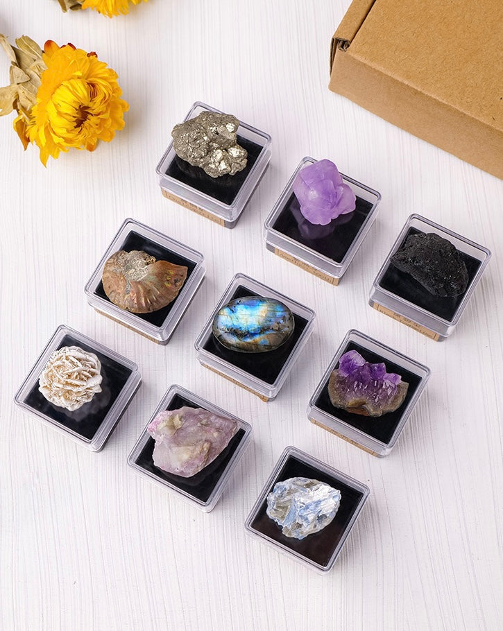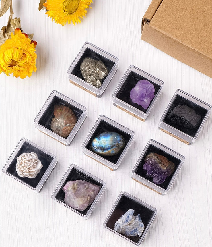 This set includes nine natural crystal stones, each selected for its unique properties to enhance your energy and bring balance to your surroundings.