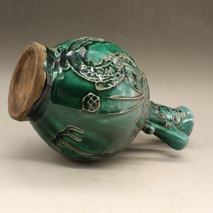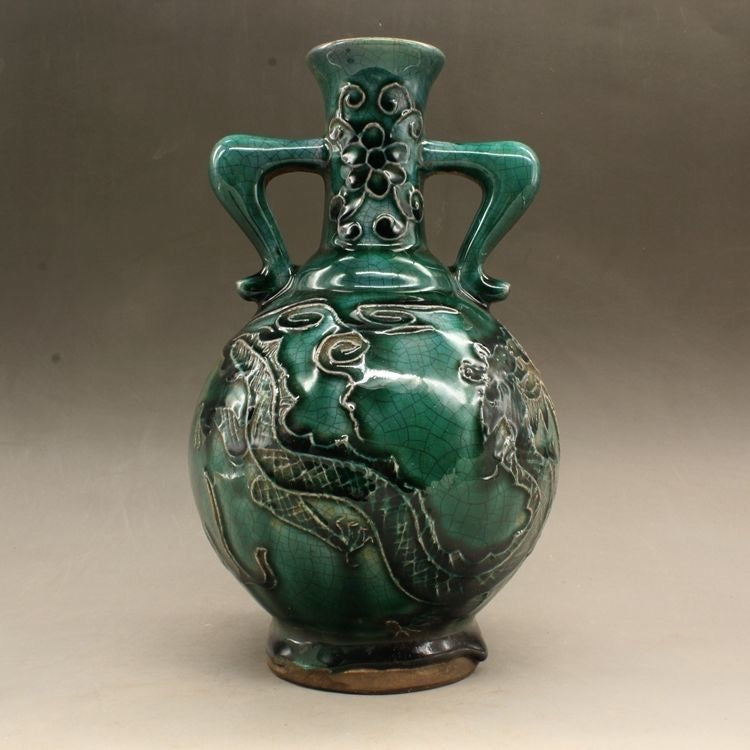 This green glaze relief vase is a stunning Feng Shui ornament designed to enhance any space with elegance and positive energy.
